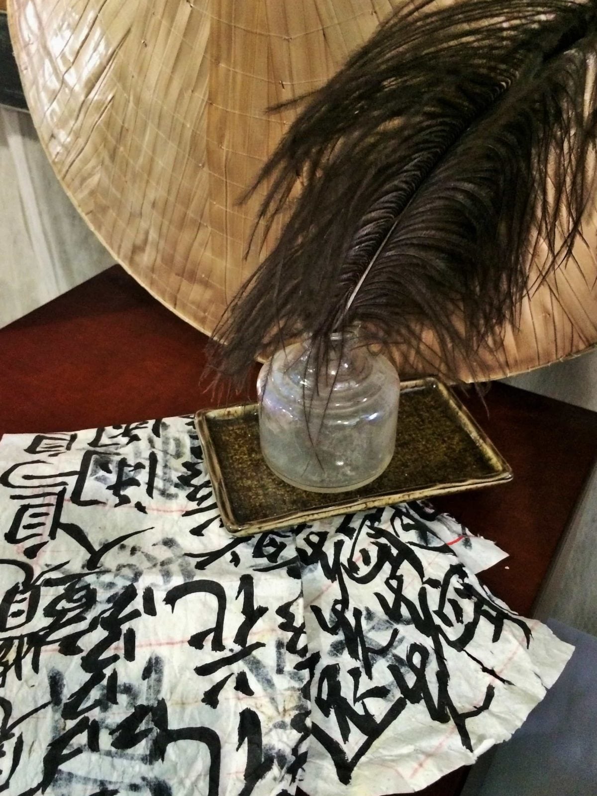 We found this sheet of rice paper covered with Chinese letters while walking in the woods, the day before we held this workshop for the very first time. (This happens a lot.)