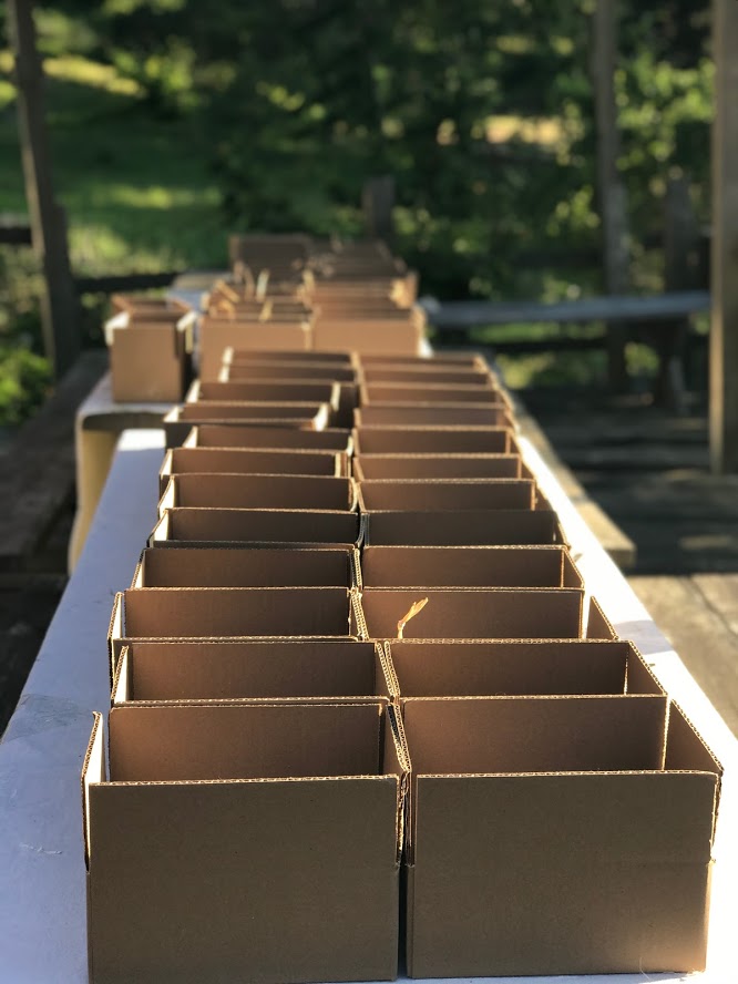(In another workshop, to replicate Moon Shadow's gift to Miss Whitlaw, we gave each child a wooden box with a golden dragon on top, each box holding a bag of flowery jasmine tea.The golden dragon label is in our printables. We also gave each child a plain white teacup and had them mark the Chinese sign for "east" on one side and "west" on the other, with a Sharpie, and then use the cup for their tea.)