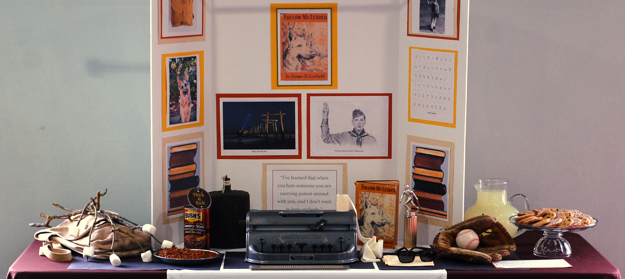 To experience a taste of Follow My Leader, we served dog biscuits and rawhide bones. Just kidding! We shared in the refreshments that Mrs. Carter offered Jimmy and his friends: 1950s-style cookies (bought or baked) on a platter, and a glass pitcher of lemonade.