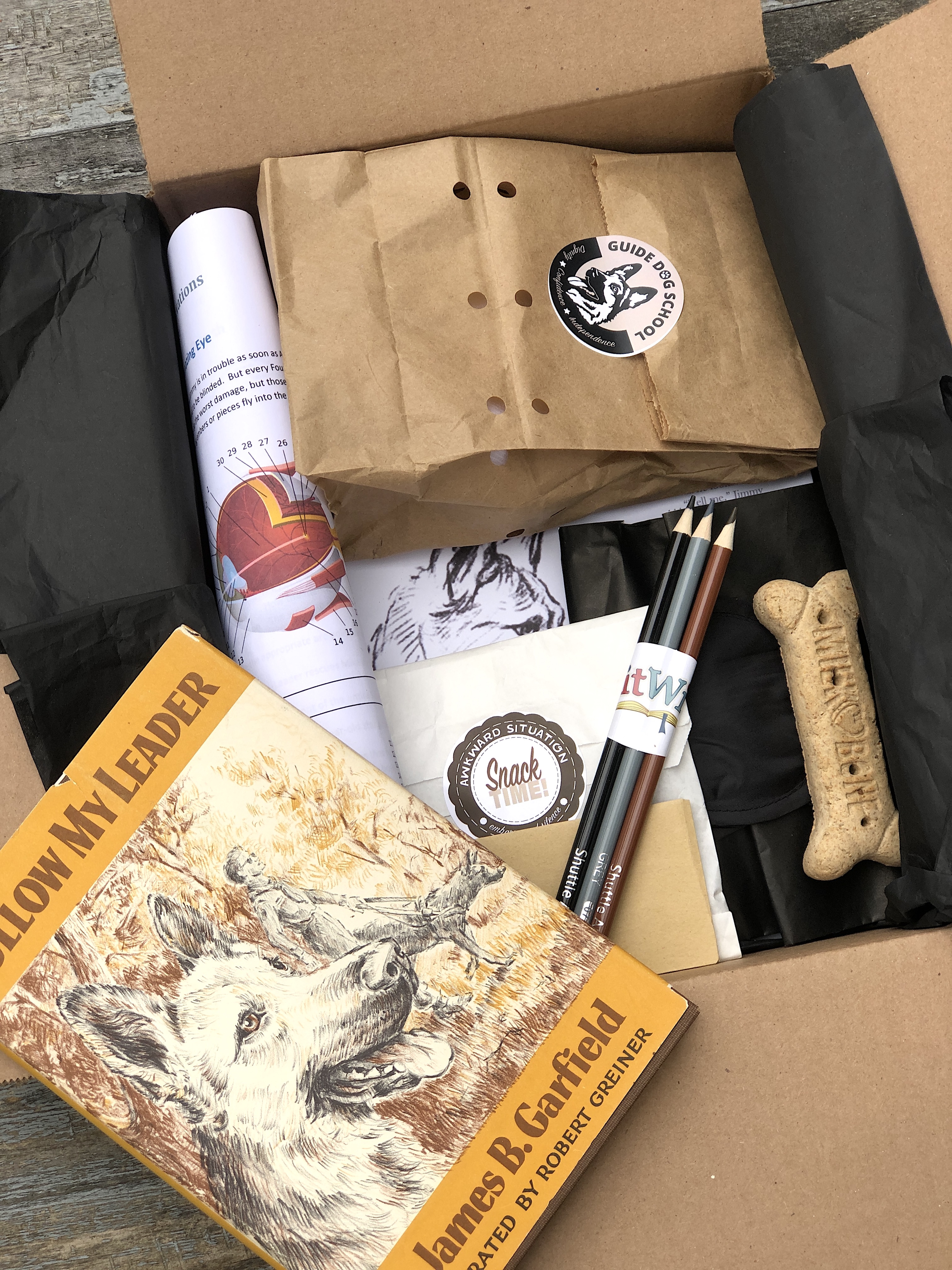 For this activity, we pretended to hear growling from a closet, then opened the door to find that a special delivery from Guide Dog School had arrived! The kids were ECSTATIC at this surprise!