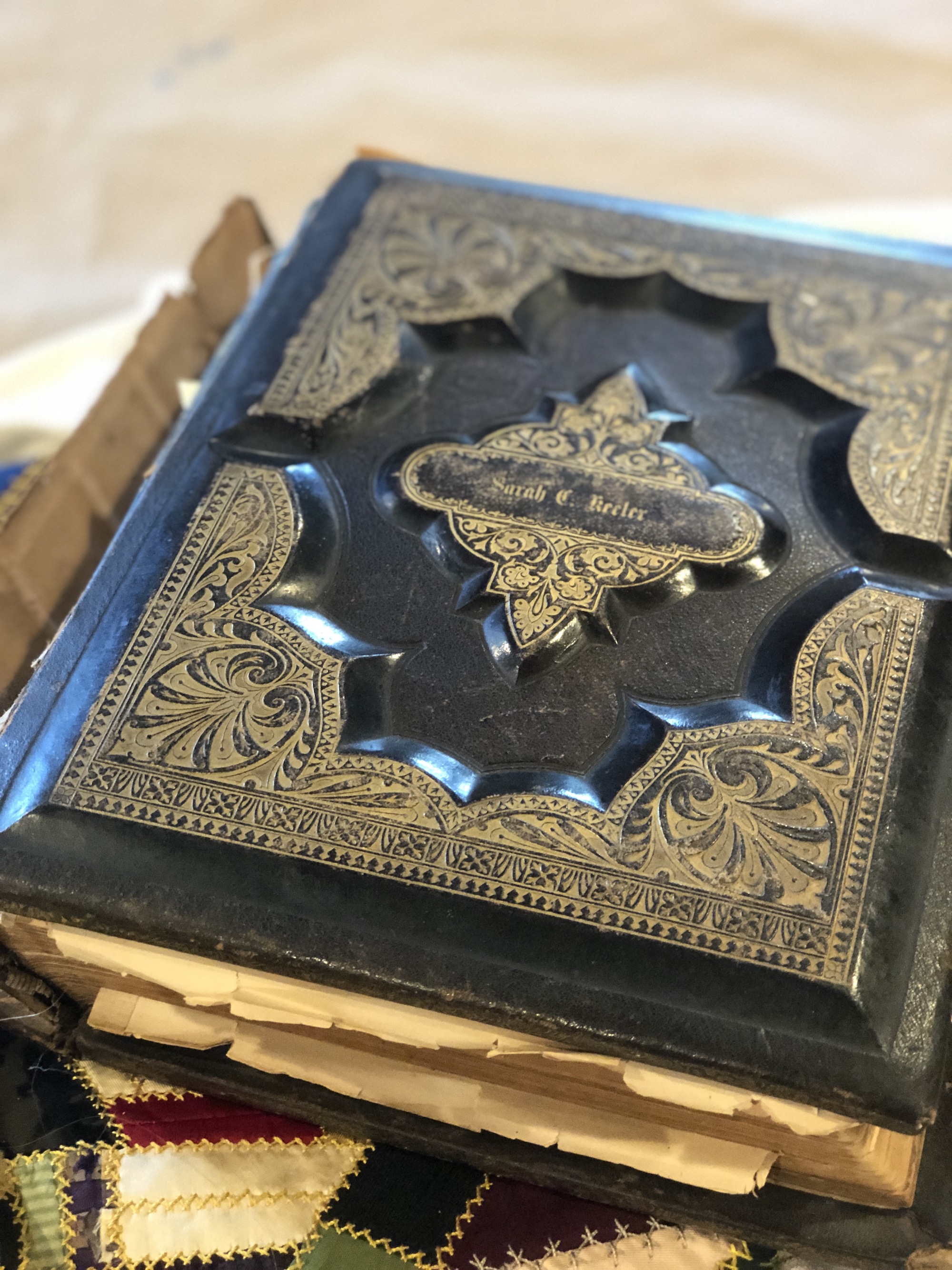 The children's beds were covered with torn rags, but Rit and Daddy Ben's was spread with a glowing patchwork quilt of green and brown and yellow cloth. Harriet's eyes lit up when she looked at the quilt. . . [her mother] had patiently collected bits of material, torn dresses, and fragments of men's suits from the Big House. . . It was warm and soft and colorful, their household's only treasure. - "Peck of Trouble"