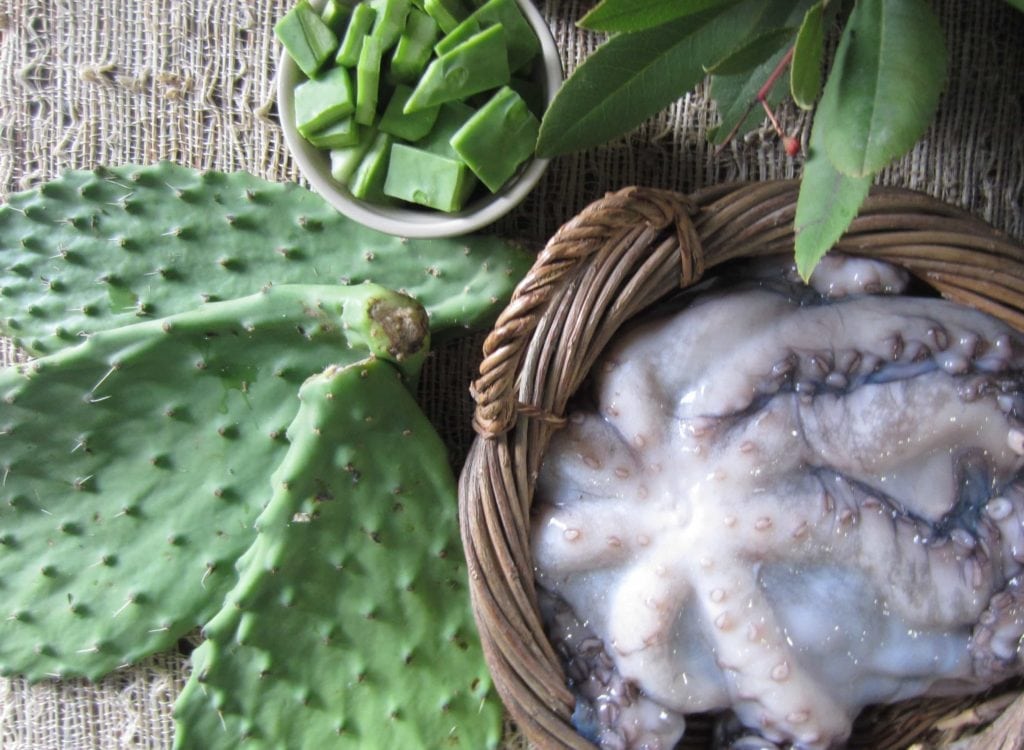 Mi Pueblo markets for cactus pear, yucca, dried ginger, fresh and cooked octopus
