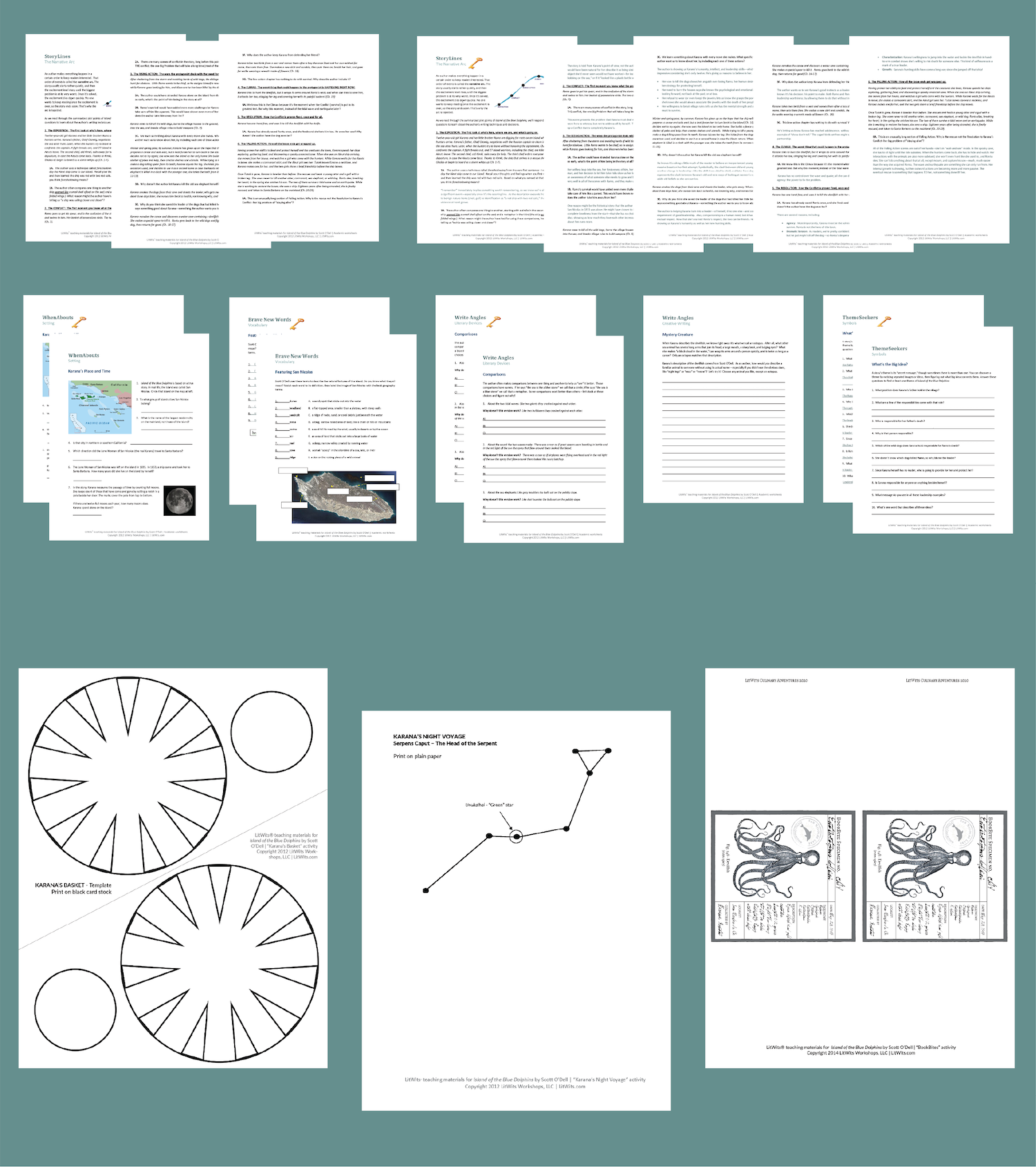 Island of the Blue Dolphins left a deep, lasting impression on ten-year-old Jenny, because her teacher, while reading it aloud, paused to show films of what had happened to Karana's people, and of real, modern seal hunters in action. She remembers slipping over to her teacher in the dark as the reel-to-reel film whirred, to tearfully ask her "WHY? How could people do such awful things?" Her teacher gave her a hug, but no answer. For Jenny, that fourth-grade moment of realization that "this isn't just a story" would lead to letter-writing campaigns and other environmental efforts for decades to come; the book also got her reading lots more historical fiction. So of course it was a "natural" choice for one of our experiential workshops. It's gripping, and it's packed with great takeaway topics, which we're sharing below.
