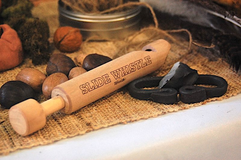 Does it really sound sad, like it says in the book? Play this instrumental-only recording for the kids, and ask what they think! Then see if they can play the tune on their very own slide whistles! (We thought about having our kids carve their own willow whistles, but decided that level of authenticity just wasn't worth the risk.) If they'd like to sing along, there's a lyrics sheet in our printables.