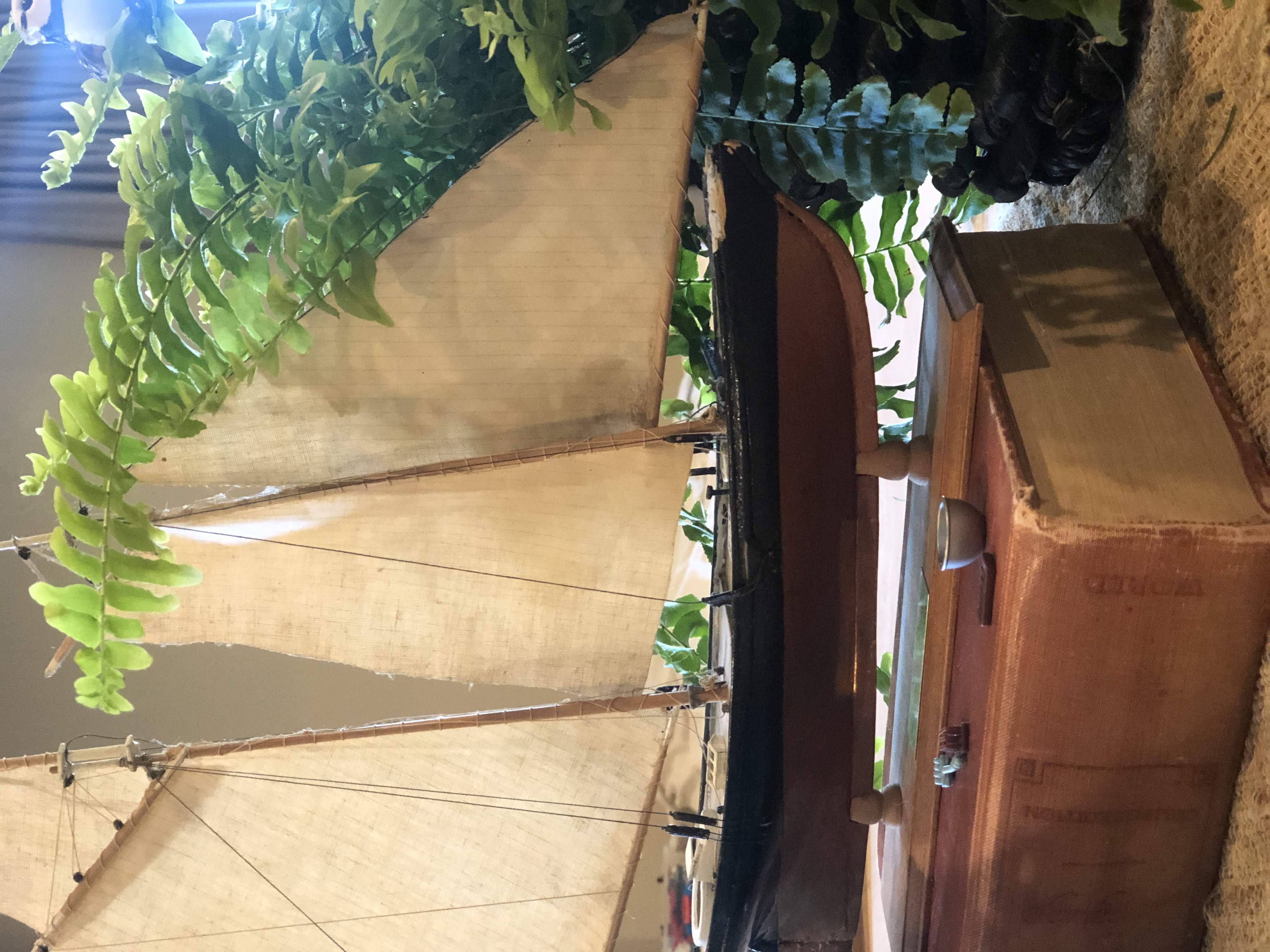 Glue the map inside the lid, then glue the ring to encircle Maine. Then clip the bird and the frond to the top of the lid.