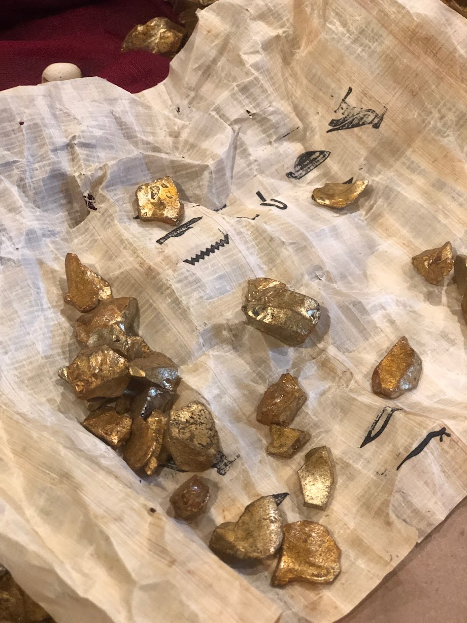 We couldn't take a field trip through The Golden Goblet without a golden goblet--it's literally THE object of the book! This project centers around that moment when Ranofer discovers the goblet hidden in his half-brother's room, and realizes it's been stolen from Thutmose III's tomb:
