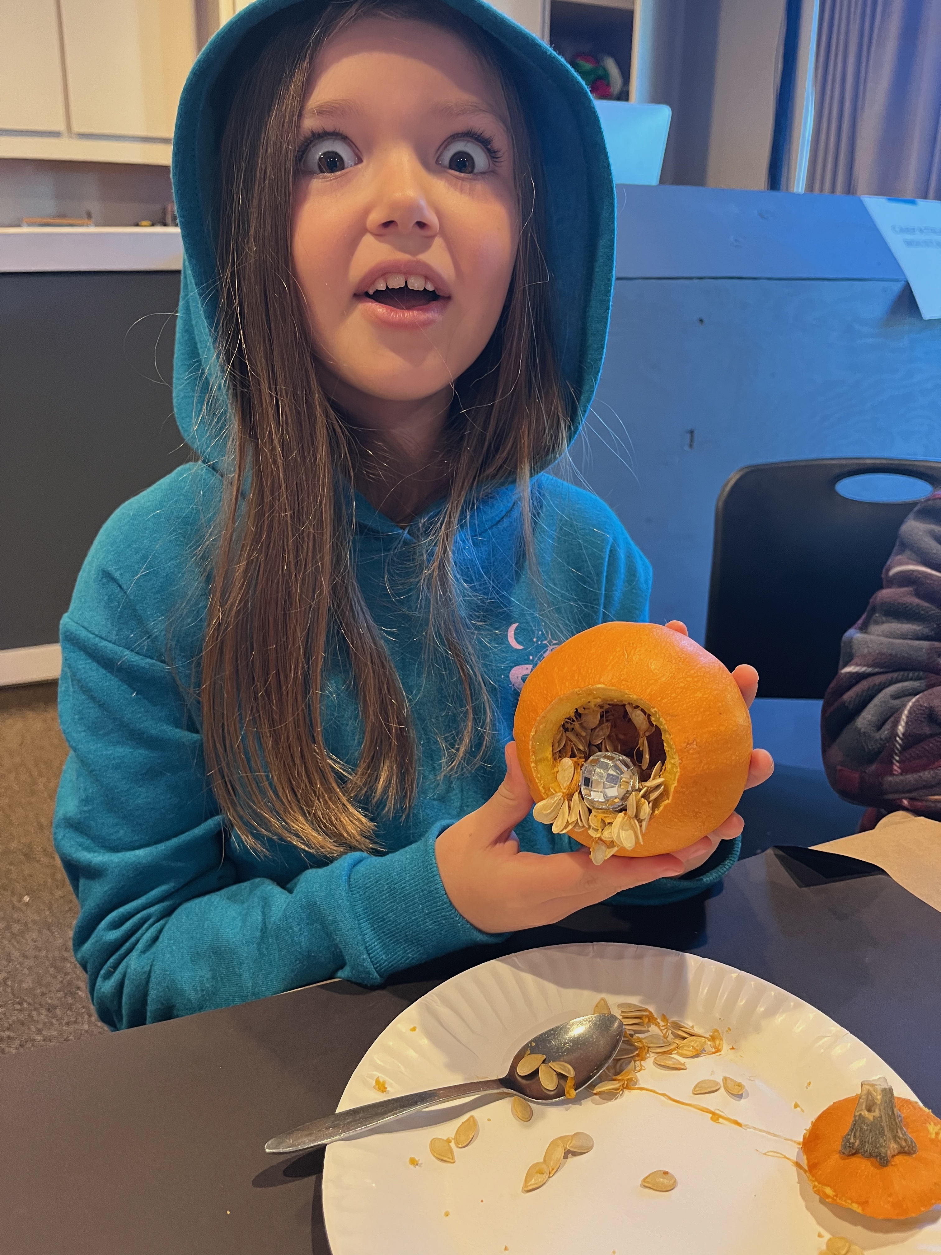 OPTION: If it's fall and mini-pumpkins are available, it's fun to carve lids and insert a small crystal in each one—then have the kids empty the seeds with a spoon, and watch their faces as they find their own mini Great Tarnov crystals!